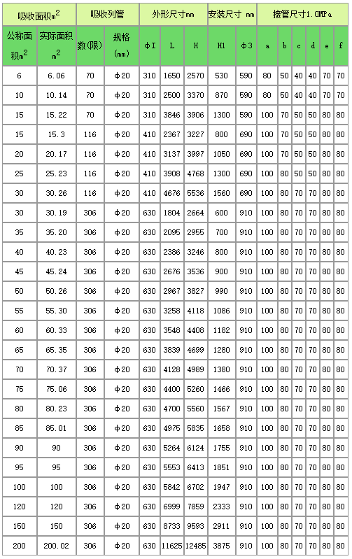 石墨改性聚丙烯吸收器系列規(guī)格對照表