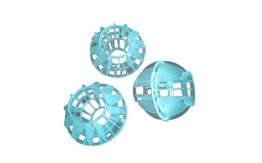 聚丙烯空心球氣速高,葉片多,阻力?。槐缺砻娣e大,可充分解決氣液交換;具有阻力小操作彈性大等特點。廣泛應(yīng)用于除氯氣、 除氧氣、除二氧化碳?xì)獾拳h(huán)保設(shè)備中。采用聚丙烯塑料制成球狀,在球中部沿整個周長有一道加固環(huán),環(huán)的上下各有十二片球瓣, 沿中 心軸呈放射形布置,適用于二氯化碳脫氣塔,接觸反應(yīng)塔等裝置。