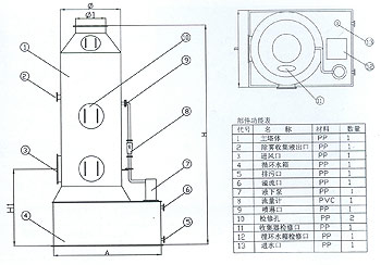 SY-2型廢氣凈化塔外型規(guī)格及技術(shù)指表: