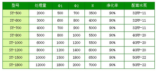 SY-1型廢氣凈化塔處型規(guī)格及技術(shù)指表: