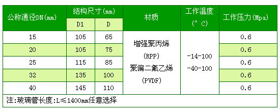 玻璃管法蘭視鏡型號(hào)規(guī)格及安裝尺寸表: